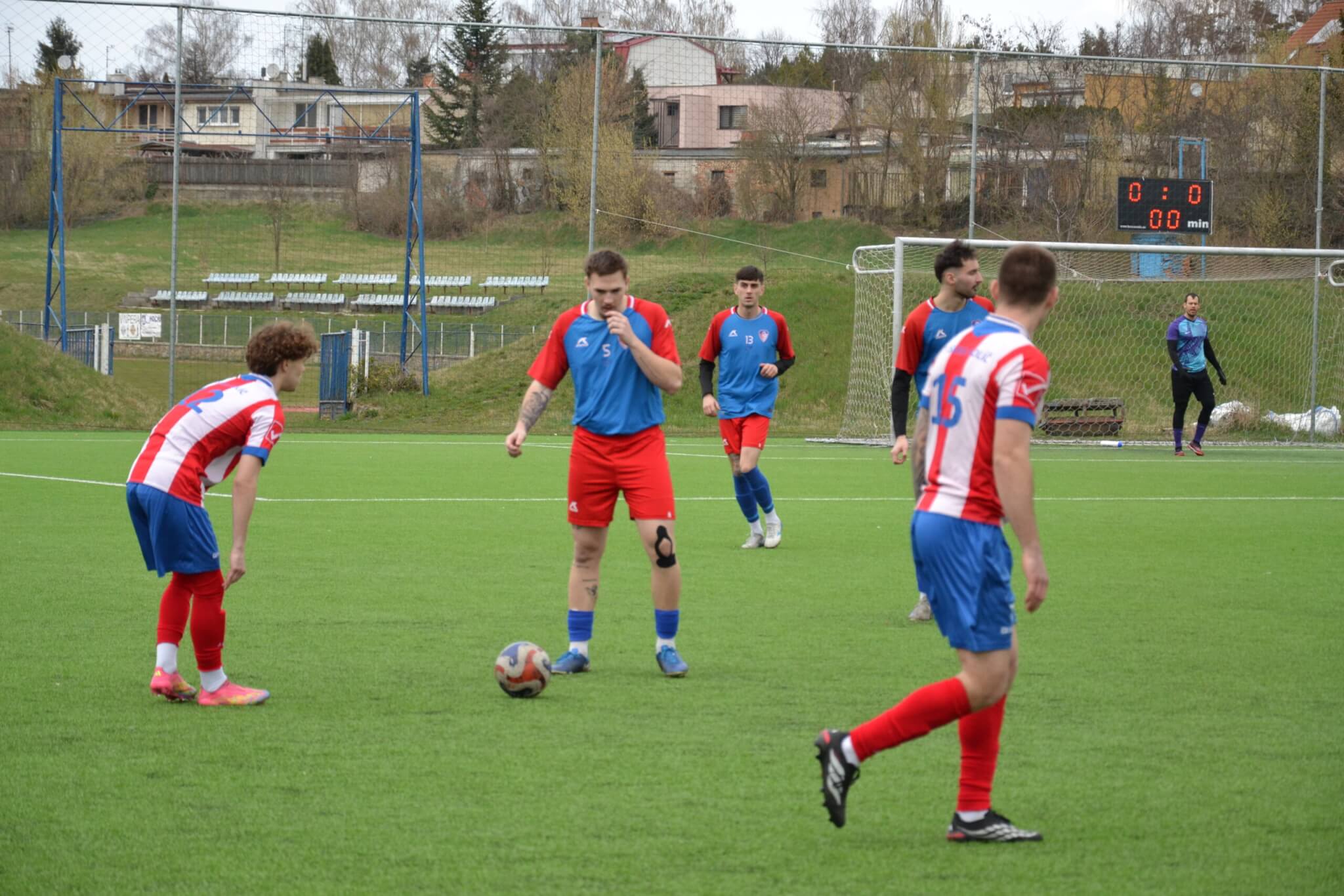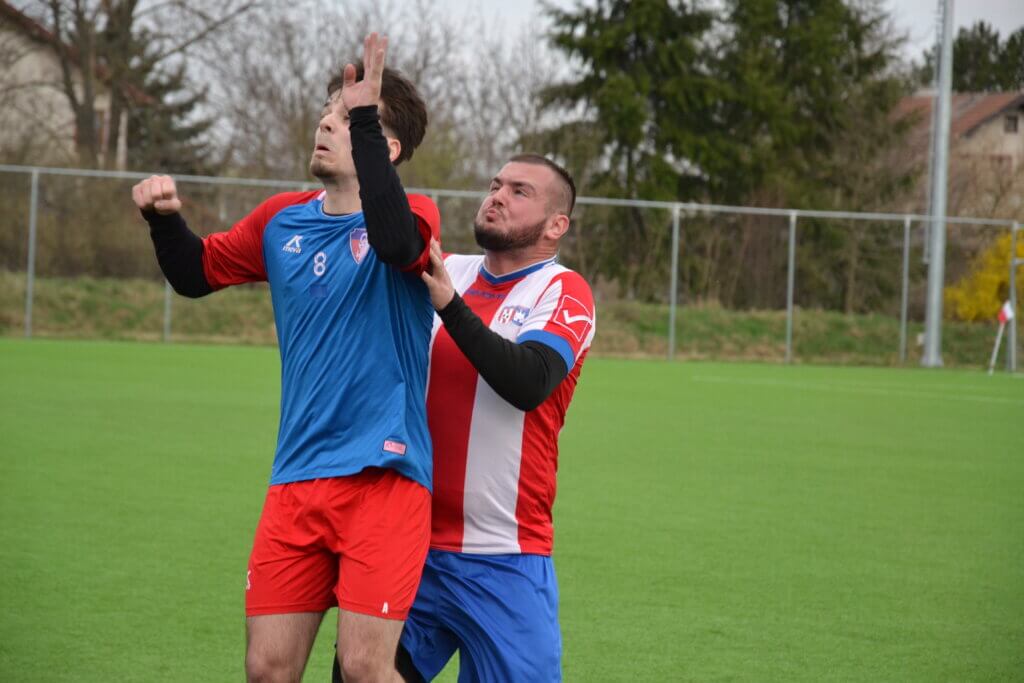 Hralo sa na ihrisku s umelým povrchom, pretože trávnik na hlavnom je ešte v regeneratívnom procese. Od začiatku nám však pomyselný tlak na víťazstvo akoby zväzoval nohy a pôsobili sme ťažkopádne s množstvom nepresností. Akoby toho nebolo málo v 25.min. sa zranil Patrik Kavoň a stred ihriska dostal ďalšiu ranu. Zápas sa odohrával medzi šestnástkami s minimom šancí a prienikov do vnútra šestnástiek a i preto sa prvý polčas skončil zmierlivo bez gólov.