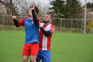 Chvíľu po nástupe do toho druhého sme v 48.min. zahrávali priamy kop z hranice šestnástky, David Mráz loptu poslal na prednú tyč, no cez viacerých hráčov dostala k Martinovi Kocákovi, ten ju poslal na žrď odkiaľ sa odrazila na hlavu Mareka Duffka, ktorý ju poslal do siete na 1:0. Naša gólová radosť trvala však len šesť minút, hostia sa po pravej sprane ihriska dostali k našej šestnástke, dlhým pasom dostal loptu na druhej strane Kujovský a ten ju posadil na hlavu nikým nestráženému Kozánkovi, ktorý poľahky vyrovnal, 1:1.